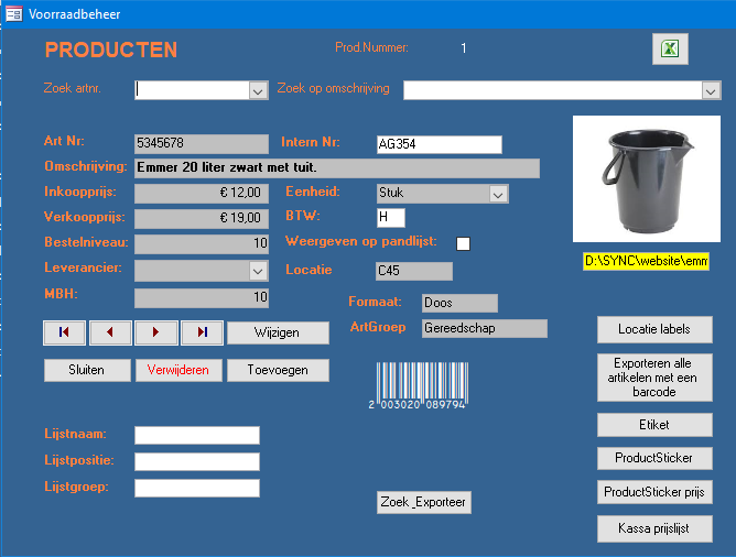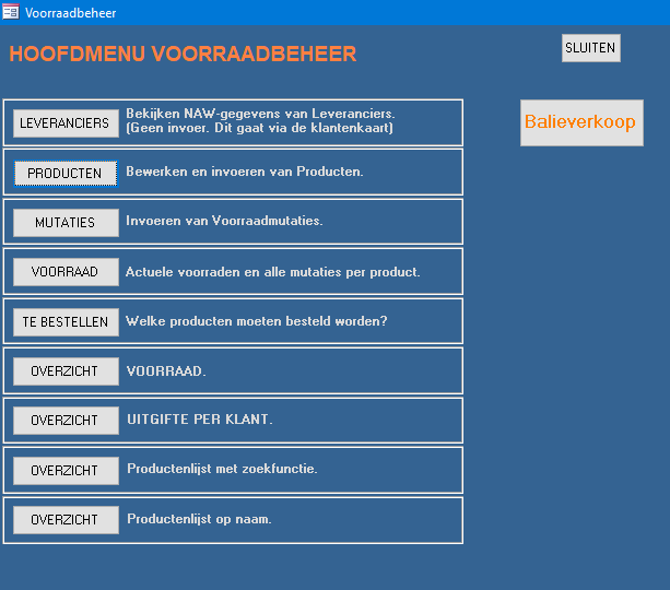 - Voorraadbeheer producten ( barcode stickers printen, balieverkoop met bonnen, bestellijsten, etc. )