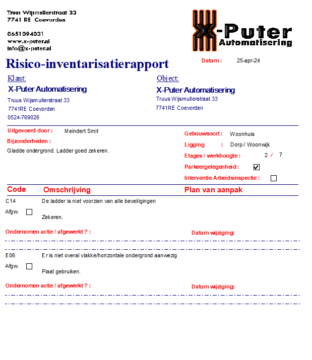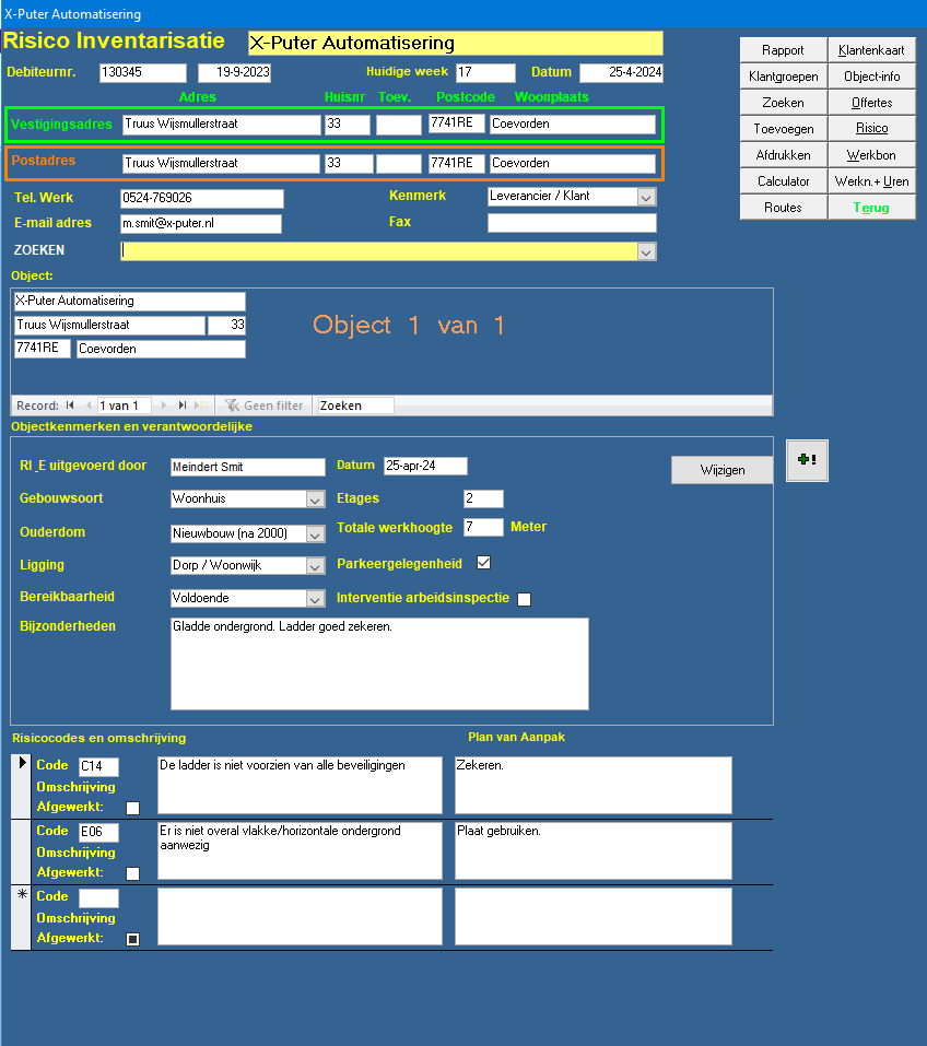 - Objecten gekoppeld aan klanten, werkzaamheden, personeel, producten en RI&E per object